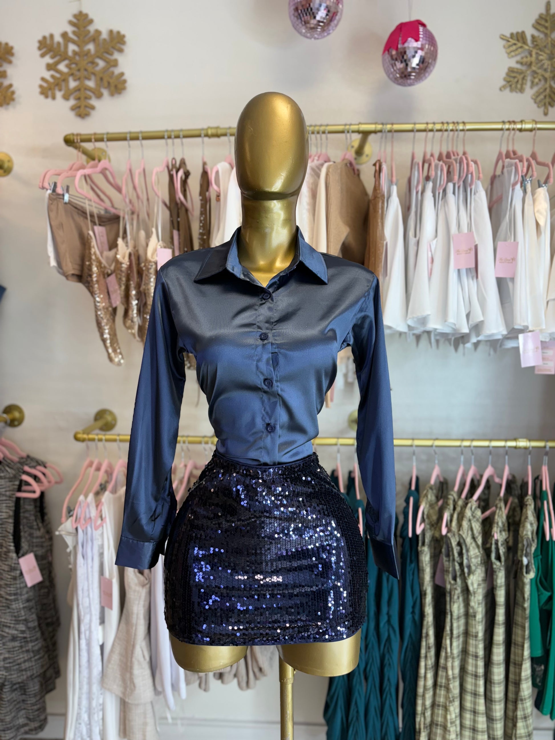 Navy satin button up